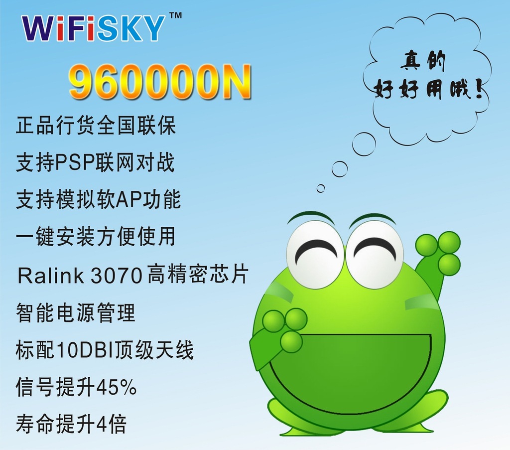 产品特点:接受信号强.支持802.11b/g/n