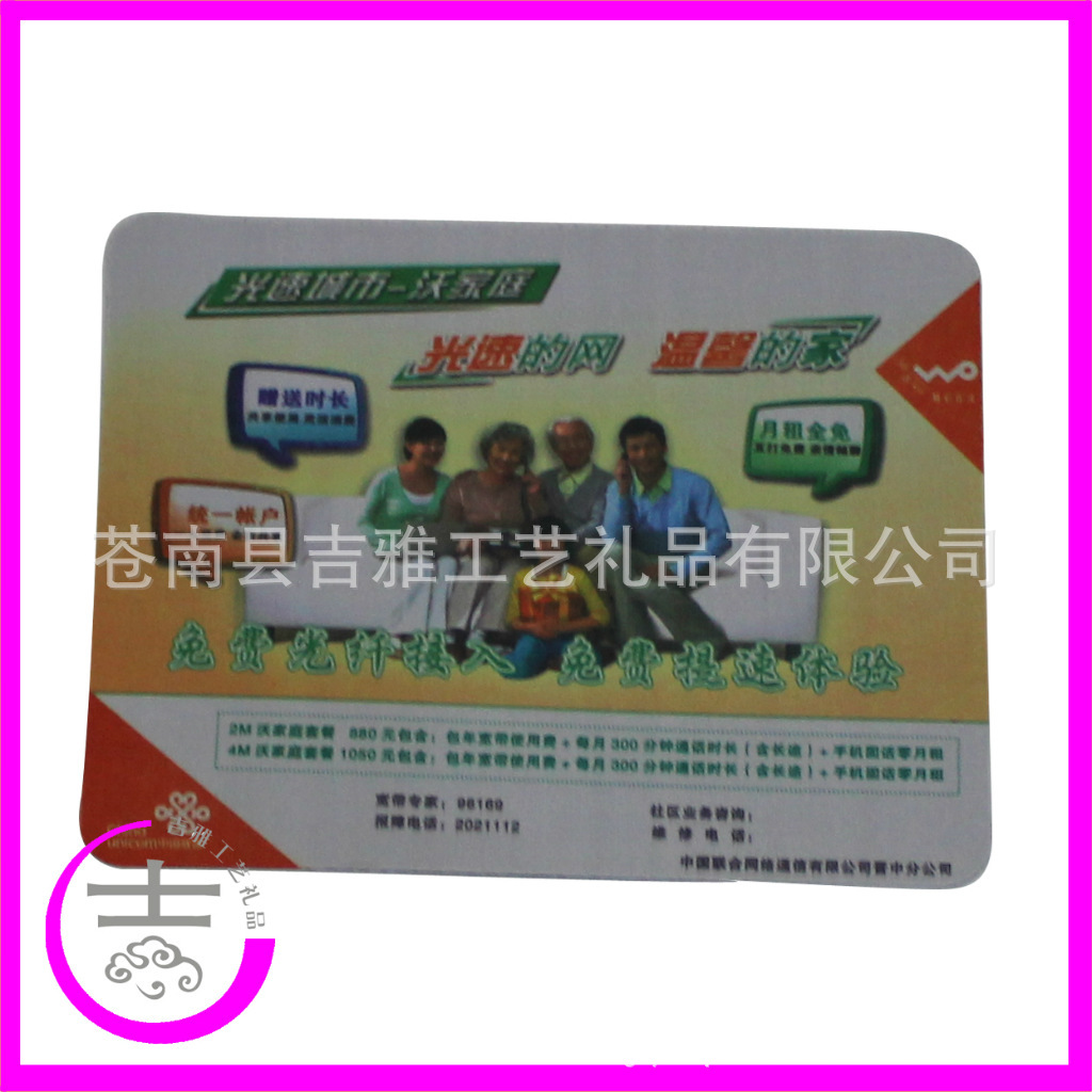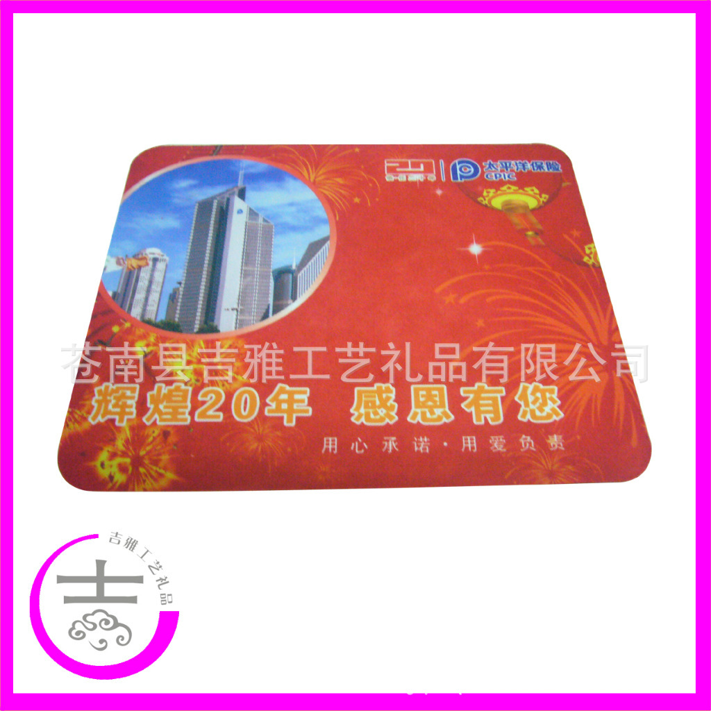 天然橡胶鼠标垫: 产品材质:天然“无味”橡胶材料加精美彩图布面 产品优点:一:天然“无味”橡胶材料柔软舒适,防滑橡胶加底部防滑条纹,使产品防滑效果更好。 二:产品表面可印精美广告,公司LOGO ,将您的广告置放到他们的手腕下,显而易见,浏 览量大。广告是长久的事情,长期不见的朋友,将会变得生疏并逐渐淡忘。时刻印入眼 内的广告,让人更自然的接受。 三,精美布面手感更好,适合工作,上网,游戏等,更能起到保护鼠标的做用。 产品特点:可根据客户要求,做出不同规格,不同厚度的产品,让你广告更有个性。 产品包装:每个产品一个OPP胶袋包装,然后入纸箱包装,可根据要求包装。 本产品以精美,手感好,实用赢得客户。