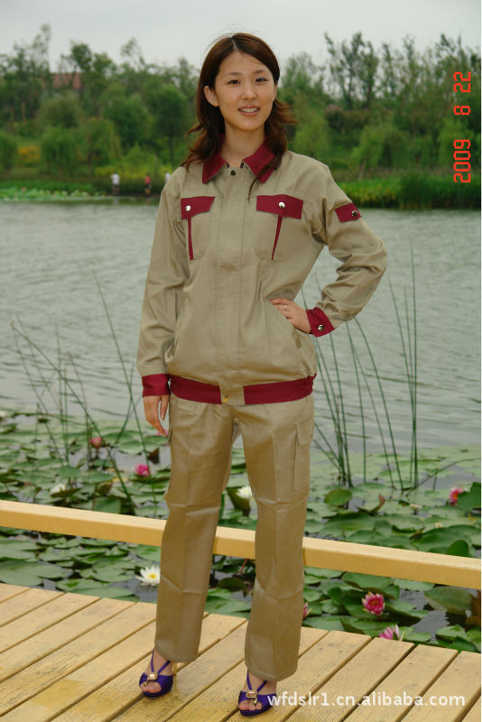 面料:涤卡(涤棉混纺织物,专用工作服面料,不起球,不褪色,耐磨易洗)