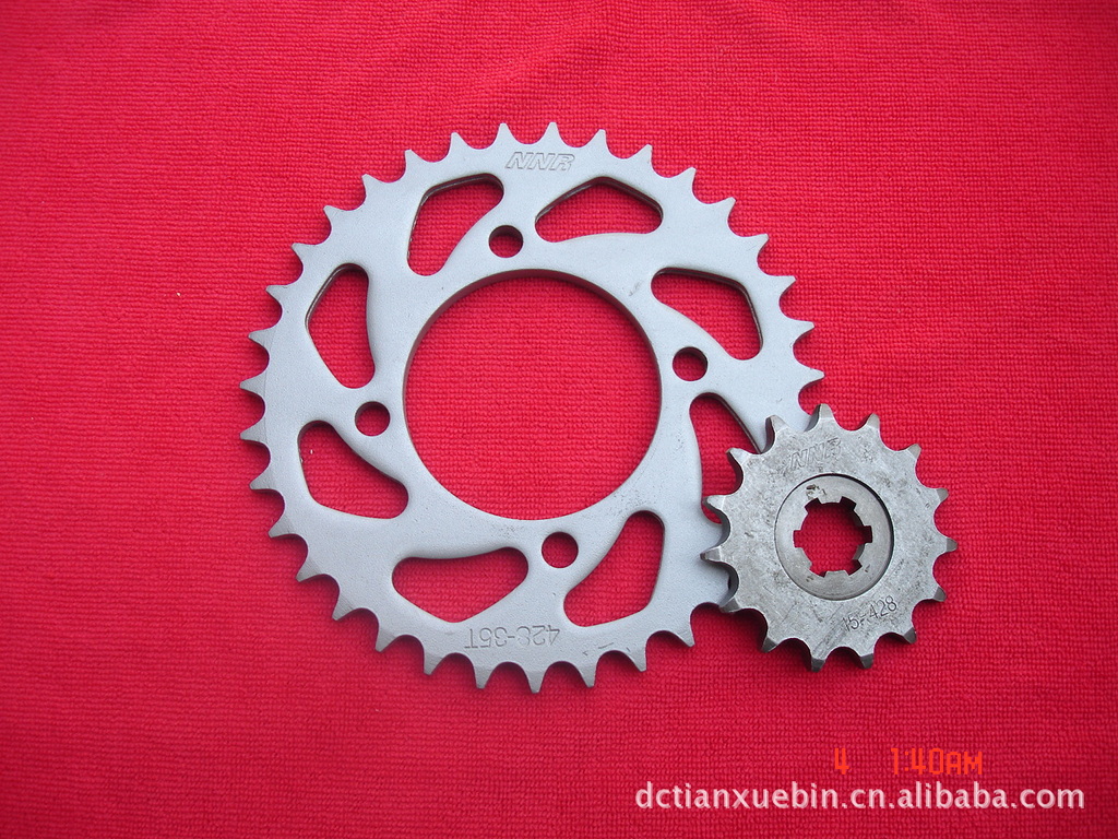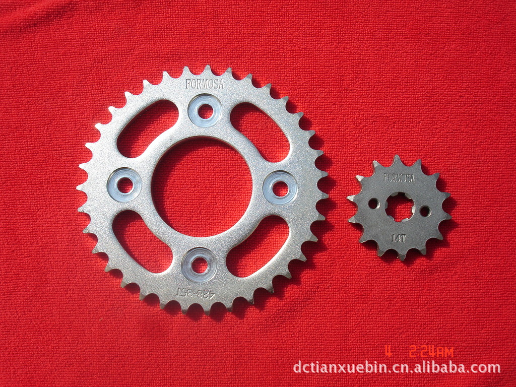 大链轮采用正厂优质45#钢材,小链轮采用20CrMnTi,全部为锻打工艺,网带炉热处理,硬度更均匀,更稳定,原装设计,原装配套。