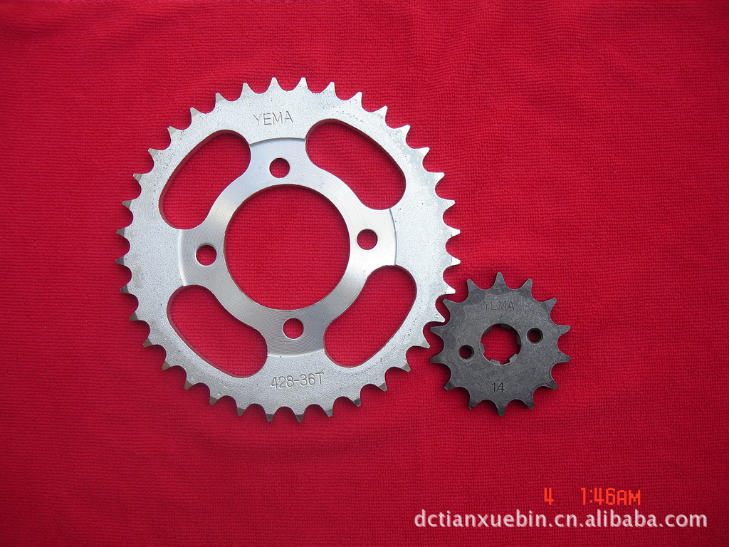 大链轮采用正厂优质45#钢材,小链轮采用20CrMnTi,全部为锻打工艺,网带炉热处理,硬度更均匀,更稳定,原装设计,原装配套。