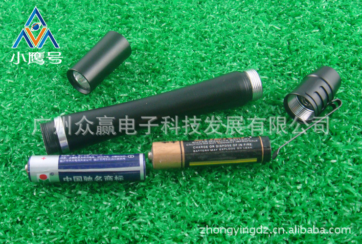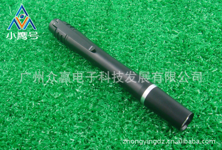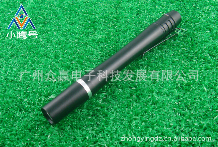 zy-417品名:LED笔挂手电筒*产品尺寸:121X15mm*产品材料:铝合金*产品重量:18g*常规包装:opp袋+白盒*装箱数量:600PCS/箱(100个1小箱)*外箱尺寸:33.5X23X46CM*毛重净量:15/14KGS功能特点:◆使用2节AAA电池(七号电池)◆有1颗高亮度LED草帽灯照明(0.5W)◆绿色环保,寿命达一万小时以上◆铝合金外壳,表面氧化处理.◆产品颜色多种,按客户要求◆可做客人要求的LOGO