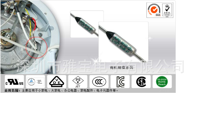 公司一贯遵循“务实、高效、创新、奉献”的企业精神,坚持以“为客户提供及时 、可靠、专业、增值的产品及服务”为使命, 通过持续的改善、执着的追求,建立了完善、严谨的品质管理体系并通过UL、VDE、CSA、PSE、KC、CCC等安全认证。公司还拥有UL和VDE认可的目击实验室。雅宝公司“AUPO”这一自主品牌已成为国内温度保险丝行业的第一品牌。