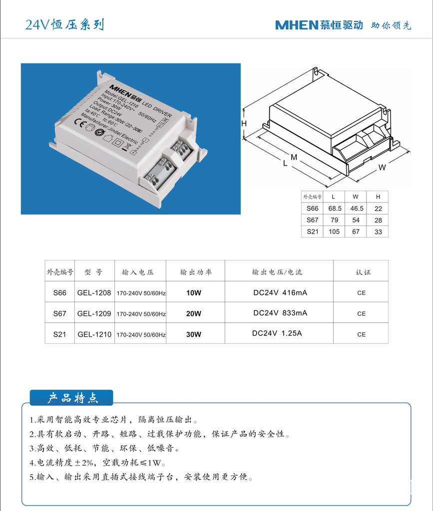 1、适用光源:适用于各种贴片光源(3528、3020、3014、5050、5630等)2、适用灯具: 适用灯具:玉米灯,射灯,镜前灯,灯杯,软硬灯条等3、有短路保护,开路保护,温控管理,防止异常状态下过早损坏。4、精确恒压输出,不随输入电压,环境温度与工作时间而变化;低纹波,保证LED使用的安全性,5、使用高品质元器件,是普通产品使用寿命的3-5倍。如电解电容的使用寿命≥10000小时;6、具备软启动功能,防开关尖峰冲击。