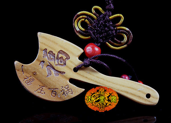 桃木镇宅辟邪在民间广为流传,凡盖新房就用桃枝订在房屋四角,以保家宅安宁,大吉大利,迎亲嫁娶,也用桃枝,意为婚姻美满,富贵平安,逢年过节,也要取桃枝挂门边,用来镇宅接福,节日祥和,桃木应用在我国和东南亚国家广为流传和使用。桃木以果实为主,它的树干,粗短弯曲,又易变形,所以取材极难,经泡、蒸、煮、捂、晾、干燥等处理十八道工艺,处理后的桃木剑经久耐用,色如紫铜,清香亦人。
