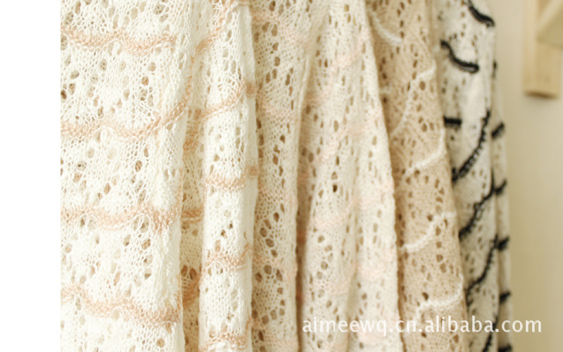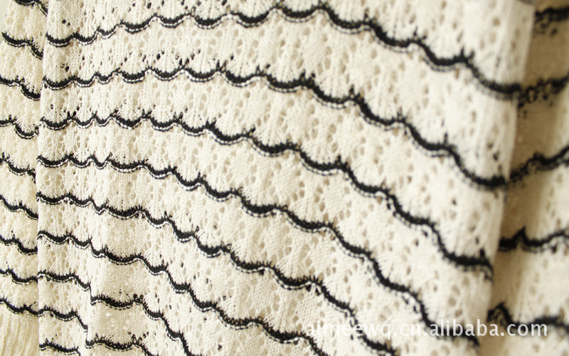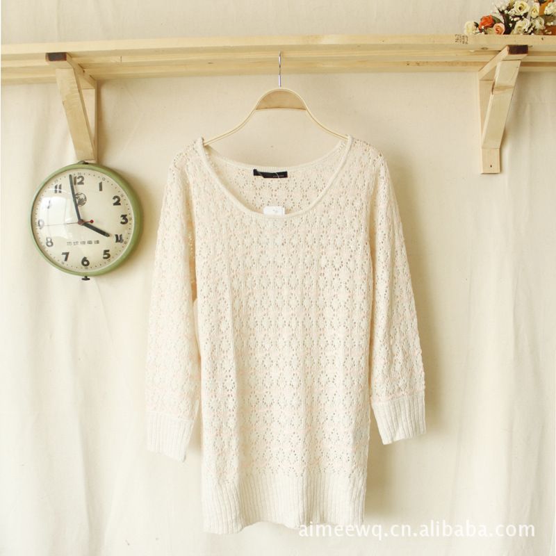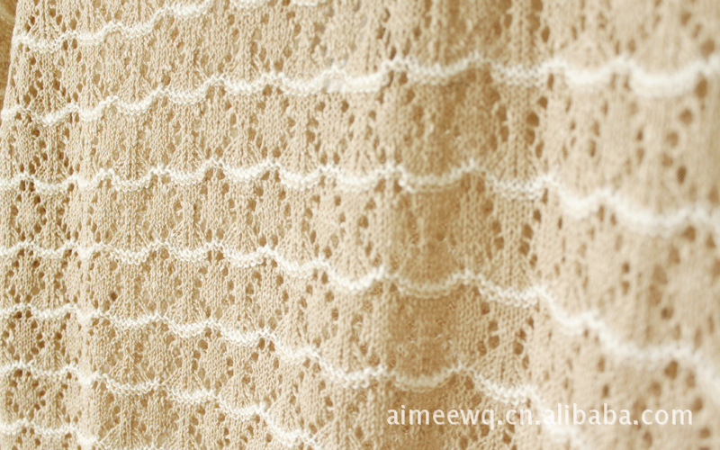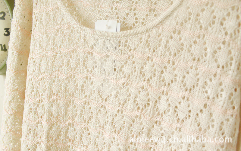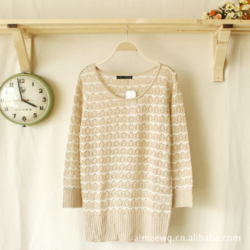 长袖圆领波浪纹镂空中长款针织衫 针织毛衣