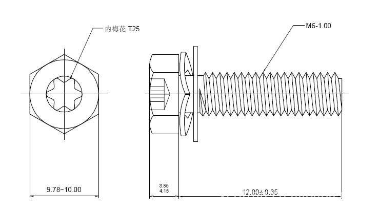 批量供应 组合螺丝 M6X12 外六角穿平鞍垫 内梅花 碳钢 达克罗