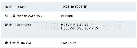 宁波云环电子集团有限公司创建于1985年,在电气行业中实力雄厚,专业生产电源线、橡胶线、插头、插座、灯具、线束、电脑周边连接器、通讯连接器、DC电源线、音视频连接器等