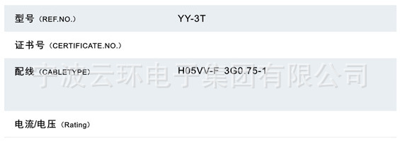 宁波云环电子集团有限公司创建于1985年,在电气行业中实力雄厚,专业生产电源线、橡胶线、插头、插座、灯具、线束、电脑周边连接器、通讯连接器、DC电源线、音视频连接器等