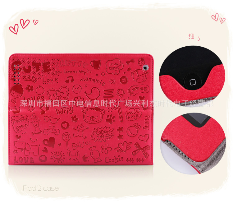 休眠功能:支持iPad 2 3自动休眠/唤醒功能,只需开合皮套上盖,轻松奢意。