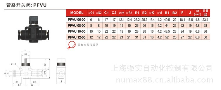 1、NUMAX气动元件产品系列齐全,有各种规格微型气动接头,以及smc、ckd、festo通用的各种直通气动接头、三通快速接头,四通,五通,L形气动弯管、T型金属接头、Y型、万向、十字、多管形高端快换接头,调速阀,流量阀,消声器,接头配件;PU管,尼龙管,以及特氟龙等气动软管。上海强实同时提供接头,气动接头,金属接头,旋转接头,消声器等样品的领取。以上产品均备有大量库存,现货供应,咨询专线:021-54640182*218