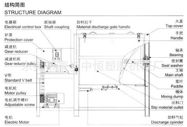★ 适合量大之塑胶粒、粉、新料、旧料、添加济助之搅拌混合、混色之用途;