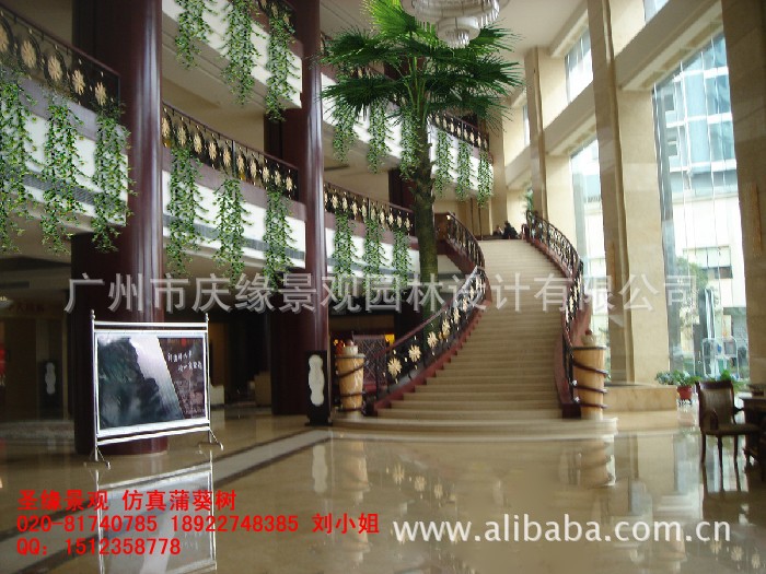 广州市圣缘景观仿真植物厂,是广东省一级仿真树生产企业,专业生产仿真椰子树、仿真海藻树、仿真棕榈树,保鲜棕榈树,仿真古榕树,仿真桃花树、仿真樱花树、仿真枫树、仿真松树、仿真竹子、仿真盆栽、仿真花、造景工程、园艺设计、假山雕塑等,承接各大商场、酒店,写字楼别墅,机场、会展厅、游乐场所、高档写字楼大厅,生态园景观,生态园餐厅等造景工程。专业赢取机会,服务获得信赖。
