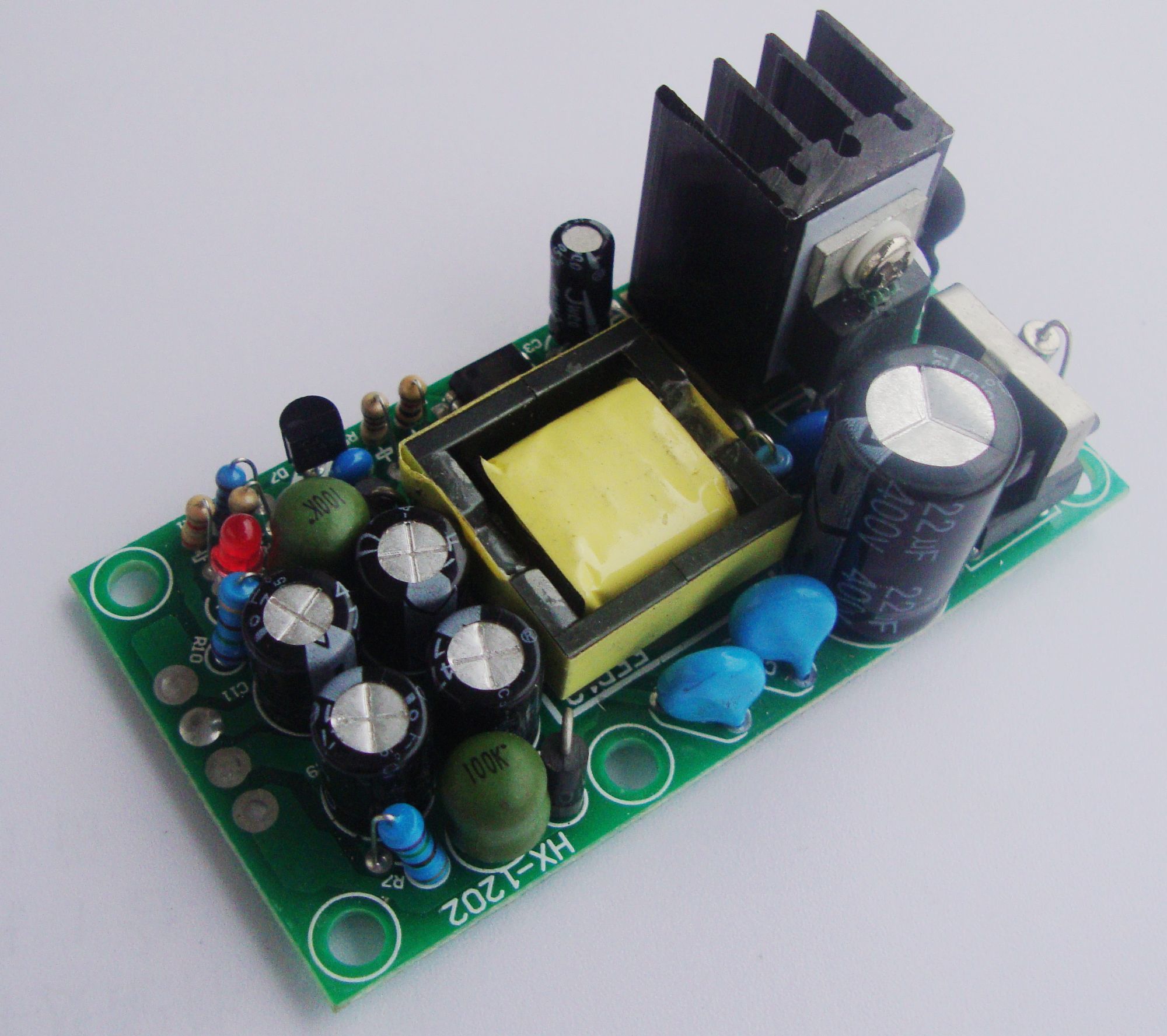具有温度保护、过流保护及短路保护,全保护功能,AC85~265V宽电压输入,高低压隔离, DC12V1.2A\5V500mA双电压隔离输出,431稳压,输出带EMI滤波电路,带指示灯,带安装孔