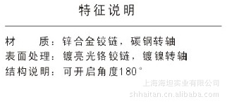 上海海坦实业有限公司是机械锁、铰链、合页、拉手、限位器等产品专业生产加工的私营股份有限公司,公司总部设在上海市青浦区,上海海坦实业有限公司拥有完整、科学的质量管理体系。上海海坦实业有限公司的诚信、实力和产品质量获得业界的认可。欢迎各界朋友莅临上海海坦实业有限公司参观、指导和业务洽谈。