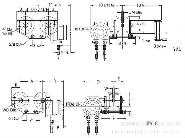 车轮材质为经过热处理的锻造钢材,弧状轮缘,适合美标锥形工字钢及宽缘工字钢。