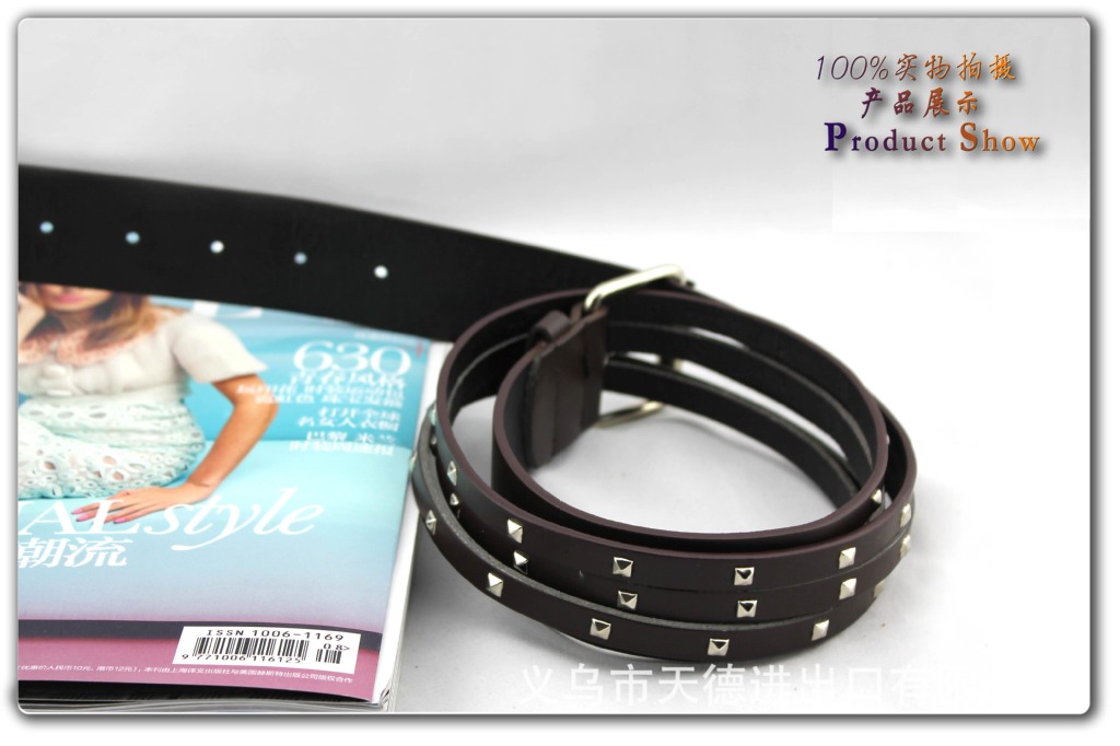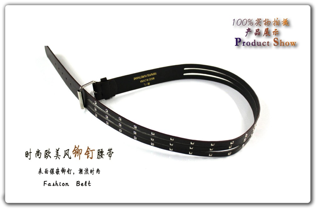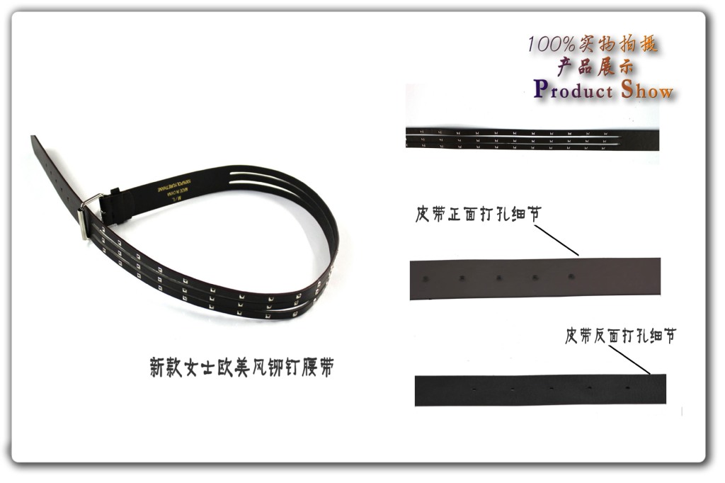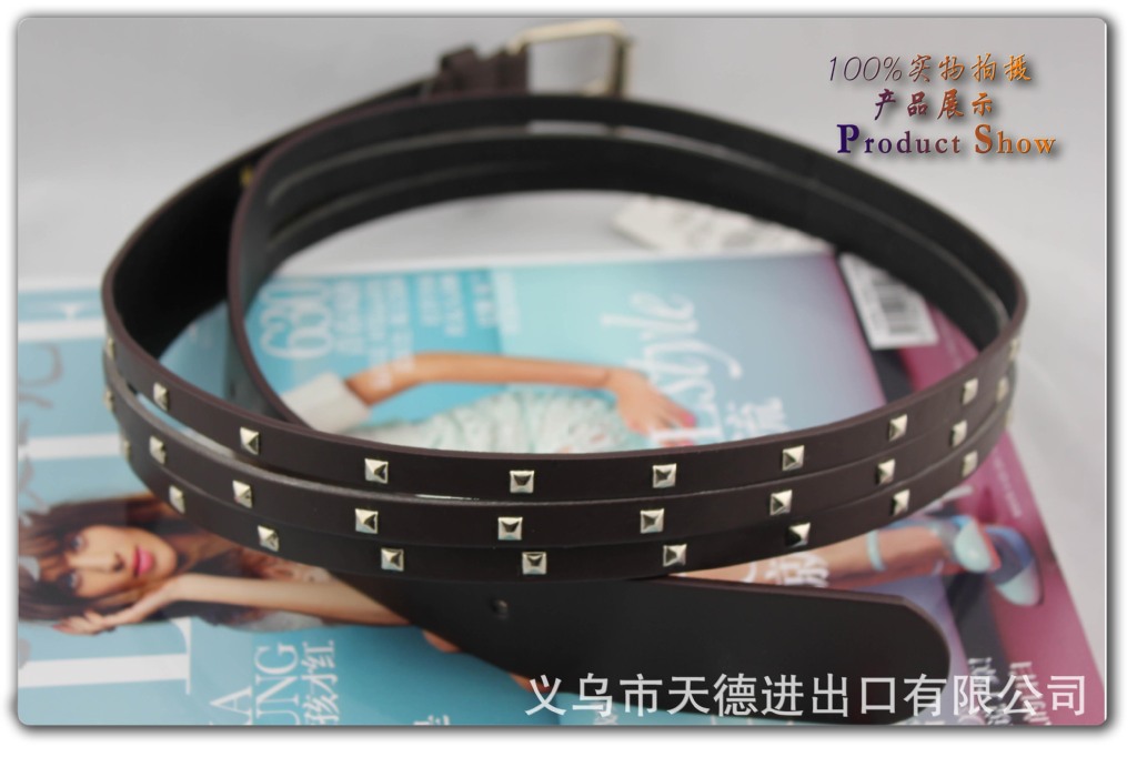 女士时尚铆钉腰带|外贸皮带订做|针扣腰带|仿皮皮带