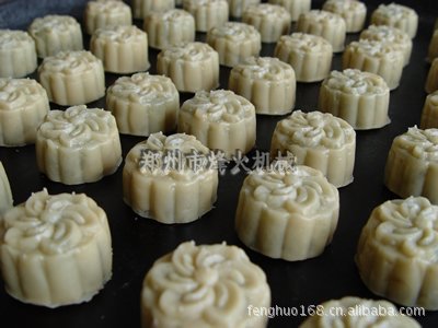 3、月饼包馅机出来的半成品,放到月饼成型机里,印花成型。