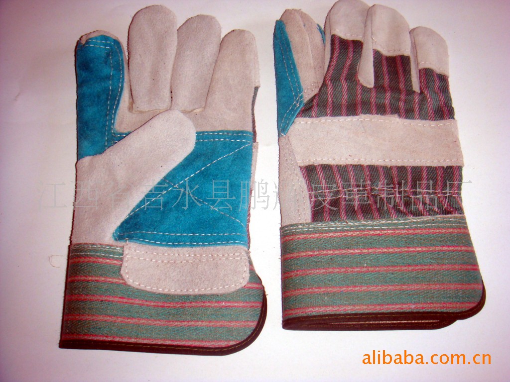 厂家热销 10.5尼龙绿灰红胶袖本色皮加绿托手套