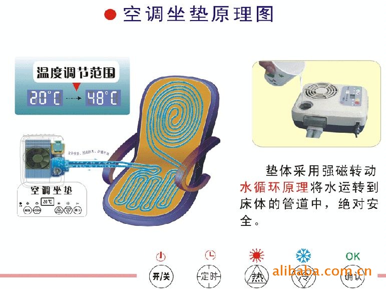 把半导体与坐垫完美结合,这是一次技术革新,多功能冷暖坐垫采用先进的”半导体芯片制冷制热,”原理和现代高科技材料,通过特殊的结构设计,使产品具有优越的高科技性能,