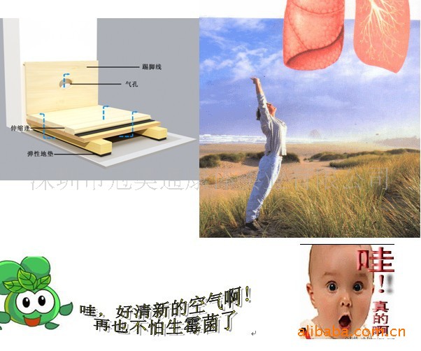 我司施工的运动木地板在运动过程中上下微量浮动时,清新的空气将从各个预留位置无阻碍的流通,带离淤积空气,给整个运动木地板系统提供新鲜的活力,驱除霉菌滋生的温床,极大地提高整套系统的使用年限.