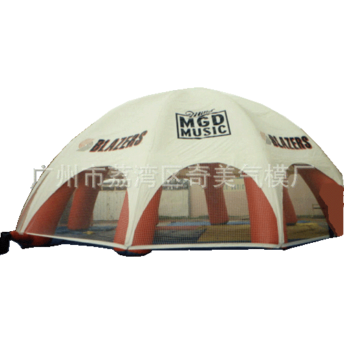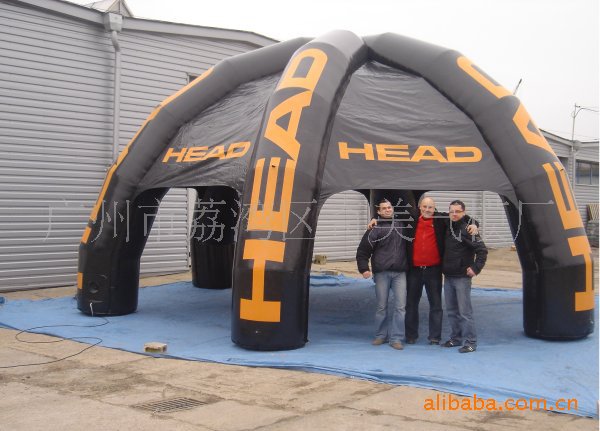 充气帐篷用于体育,旅游,商业,文化事业,尤其是影视工作现场,大型交易展示活动现场及休闲娱乐,度假场所。相对于一般建筑物,充气建筑物投入低,制作,使用便利,外形美观,色彩艳丽,创造了一种全新的空间效果。