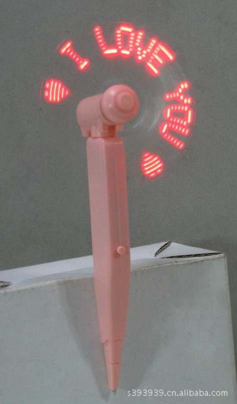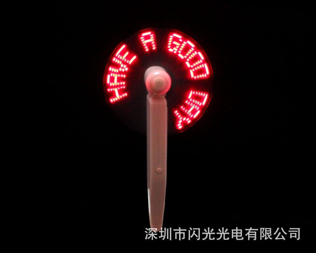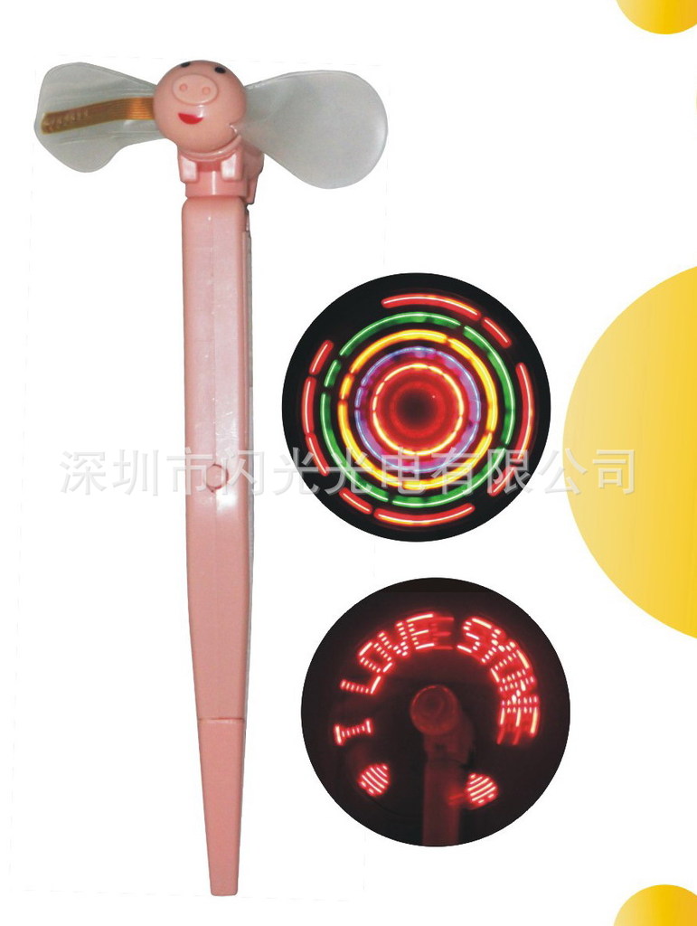 闪字风扇,手柄可印LOGO,装三节七号电池.闪灯分三十二种变化图案.