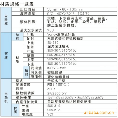 1.整体外壳采用不锈钢SUS#316材质脱腊精密铸造制成,专抽取有微酸弱碱之污物废水。