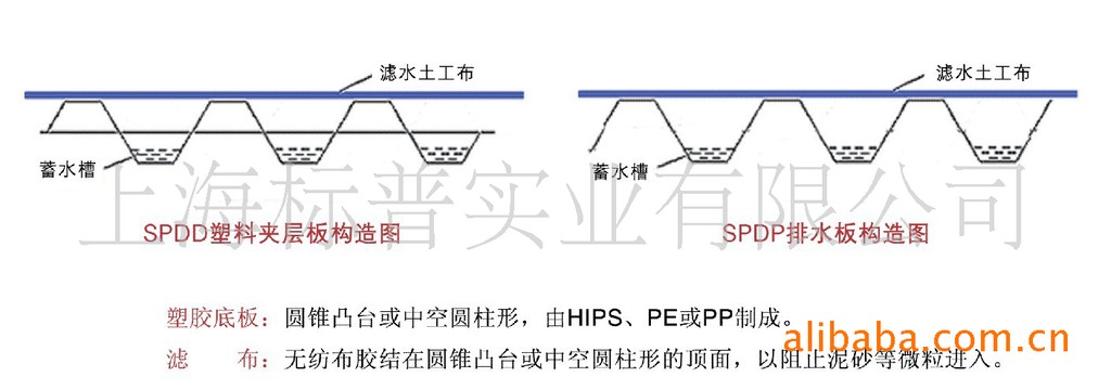 塑料夹层板用于地下工程顶板或屋顶绿化中,表面需要配上一层无纺布,但由于塑料夹层板材质较薄,抗压强度不足,在很多支点上铺设土工布,加上土工布本身也有一定的拉伸性,所以用来做地下工程顶板或屋顶绿化渗排水处理材料,很容易出现土工布凹进塑料夹层板,施工的时候为提高施工效率,又经常有小型施工车辆开进开出,也很容易压扁塑料夹层板。因此标普不建议塑料夹层板用于地下工程顶板或屋顶绿化工程中的渗排水处理上。如果必须要用,那就要注意施工的时候一是不要有车辆在塑料夹层板上碾压,二是回填土的时候先回填塑料夹层板的边缘,把土工布绷紧压实后再往中间回填。目前市场上的塑料夹层板有附好土工布的,并有黏胶将塑料夹层板与土工布粘贴,但粘贴效果并不是非常理想,因此标普仍然建议先回填边缘,压实后再回填中间。至于塑料夹层板用于保温平屋面或地下工程底板或侧墙的隔音防潮工程中,标普认为效果还是不错的。