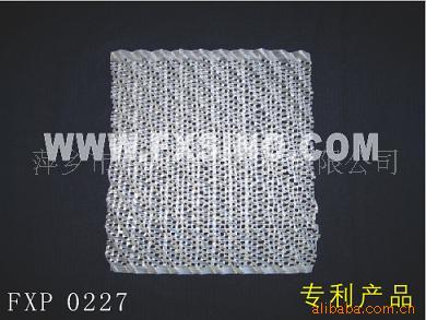 丝网波纹填料是规整填料发展的一个重要里程碑,这种填料由压成波纹的丝网片排列而成,波纹片倾角30°或50°,相邻两波纹片方向相反,在塔内填装时,上下两人盘填料交错90°叠放。具有高效、压降低和通量大的优点,产品有BX、CY型,常用于难分离和热敏性物系的真空精馏,常压精馏和吸引过程。