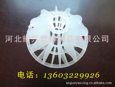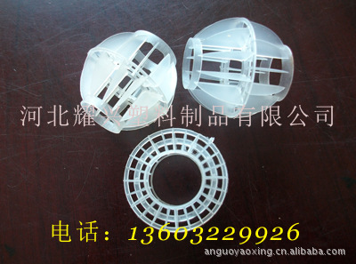 多面空心球的中部沿整个周长有一道加固环,在环的上下各有十二片球瓣。上下球瓣互相交错,沿中心轴呈放射形布置。该产品由于表面积大,传质效率高,产品空面大,且重量轻、强度大、安装方便。特点:气速高,叶片多,阻力小;比表面积大,可充分解决气液交换;具有阻力小操作弹性大等特点。