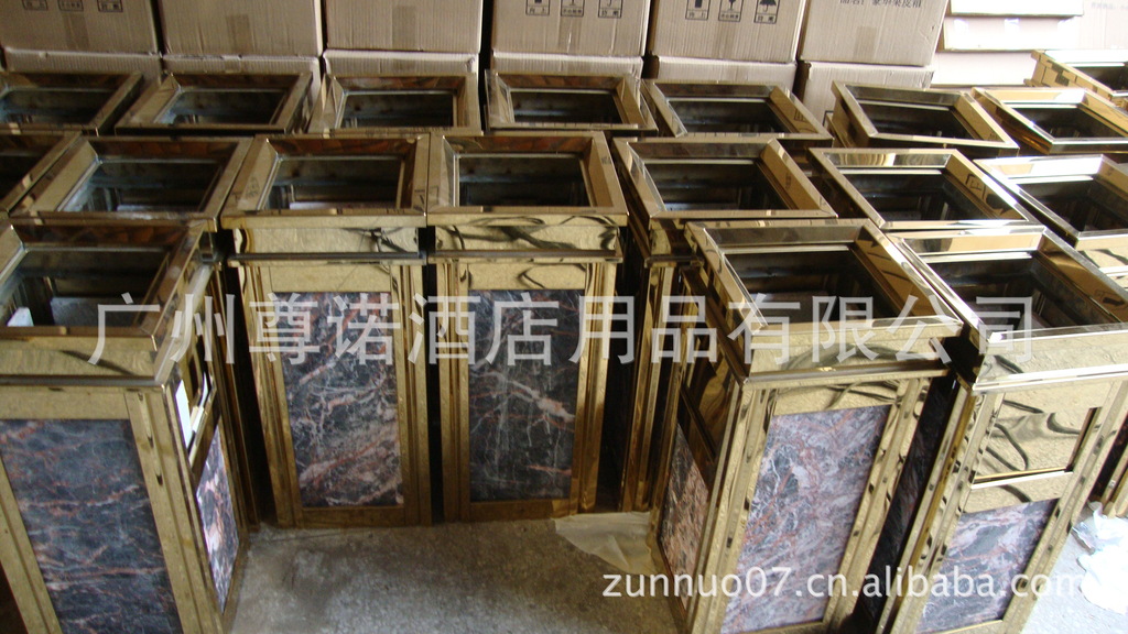 广州尊诺酒店用品厂成立于2009年3月 ,工厂总占地面积8000平方米 ,主要生产钛金制品 ,不锈钢制品 ,酒店大堂用品 :指示牌 ,果皮箱 ,行李车 ,酒水车 ,栏杆座 ,演讲台等等...... ,是一间集研发生产 ,销售 ,服务为一体的民营企业 ,本厂产品已畅销全国各地及东南亚 ,欧美市场 ,深受广大新老客户的欢迎和好评 。