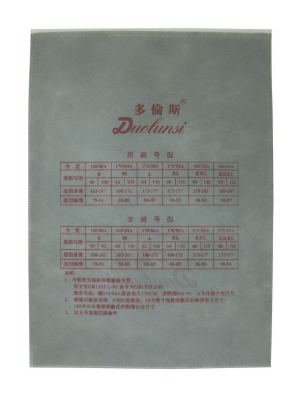 | 公司产品介绍 | | 无纺布袋、购物袋、环保袋、手提袋、服装拉链袋、车缝袋子等--具体产品介绍请浏览网站。 | ▓名称:无纺布服装拉链袋 ▓材厚:40g-120g等多种无纺布 ▓工艺:全自动超声波制袋流水线,主营无纺布服装袋、服装拉链袋、超声波热压平口袋、无纺布手提购物袋、折叠购物袋。 ▓包装:50个一捆,1500个1个纸箱包装 ▓版费:50000个以下,前面CPP印刷每色每版250元版费 ▓工期:15天 ▓注:该出厂价格只含单色双面印刷,不含运费和税票(如需要开具增值发票,另收10点税金); ▓起定量:一般起定货量在5000个起定,~~~数量少成本相对来说 会比较高一点 ▓印刷:环保水印、丝网印刷、卷筒机印,彩色印刷、热转印~~等印刷工艺可供客户选译 ▓材质:无纺布料以其方便携带,时尚的设计,环保的特性,正被众多国家极力推荐为时尚品. 其固有的环保特性已使人爱不释手,在多变的空间感觉里自然呈现,经典广告标志融合出清新时尚触觉任何场合都让人显得自然耀眼,让不同品味的广告商家都能切合需求. |
