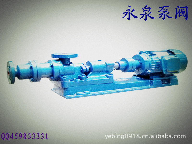 I-1B单螺杆式浓浆泵是单螺杆式容积回转泵,该泵利用偏心单螺旋的螺杆在双螺旋衬套内的转动,使浓浆液沿螺旋槽由吸入口推移至排出口,实现泵的输送功能。结构材质型式: I-1B单螺杆式浓浆泵:壳体铸铁,传动件为一般钢材,适用于一般中性浓浆液输送。 I-1B单螺杆式浓浆泵:传动件(主轴、螺杆和绕轴)为不锈钢制造,适用于一般微酸、碱浆液输送。 I-1B单螺杆式浓浆泵:传动件和接角浆液的泵壳均由不锈钢制造,适用于食品、制药及腐蚀性浆液的输送。 橡胶衬套有一般耐磨橡胶,食品用橡胶和耐油橡胶供用户选择。 传动方式有电机与泵轴直接传动,电机经减速机与泵直接传动和电机经三角皮带轮与泵轴传动供用户选购。 配用电动机有一般封闭式、防爆式和电磁调速式电机。