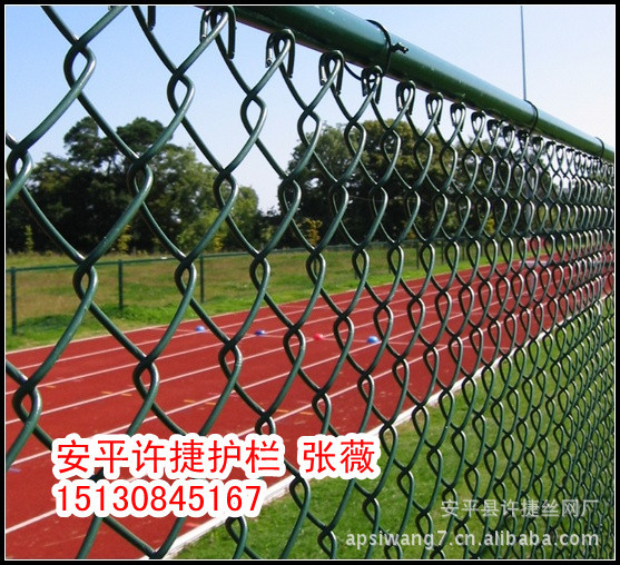 体育场围网又名“体育场围栏”、“体育场护栏网”;是专为体育场设计的新型防护产品,此品网体高、防攀爬能力强。体育场围网属于场地围网的一种,它又被称为:"体育围网",可以在现场施工安装围柱,围网,产品最大特点是灵活性强,可根据要求随时调整网片的结构,造型和尺寸。体育场围网特别适用于高度4米以内的作为球场围网、篮球场围网、排球场地和体育训练场地使用。 材质: 选用优质低碳钢丝。 编织方法: 编织焊接而成。 规格: 1. 包塑丝经:3.8mm ; 2. 网孔:50mm X 50mm; 3. 尺寸:3000mm X 4000mm; 4. 立柱:60/2.5mm; 5. 横柱:48/2.5mm; 防腐处理: 电镀、热镀、喷塑、浸塑处。 优点: 具有防腐、防老化、抗晒、耐候、色彩鲜亮、网面平整,强力张紧,不易受外力撞击变形、现场施工安装、灵活性强(可根据现场要求随时调整造型和尺寸)。 可选颜色: 蓝色、绿色、黄色、白色等。