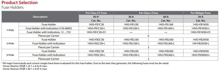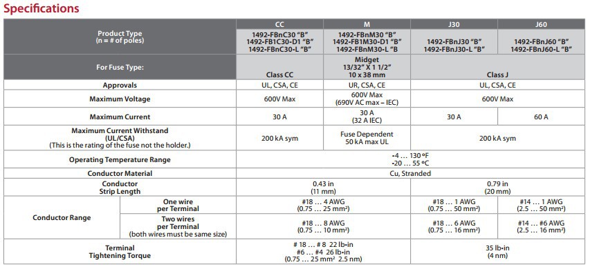 通报1492-FB保险丝座是许多OEM应用的理想选择。我们的保险丝座给你安装的CC级,歼安全和方便的手段,和侏儒保险丝。用于分支电路保护我们的CC级和J持有人。他们是优秀的电线保护,小马达负载,组小马达负载保护。