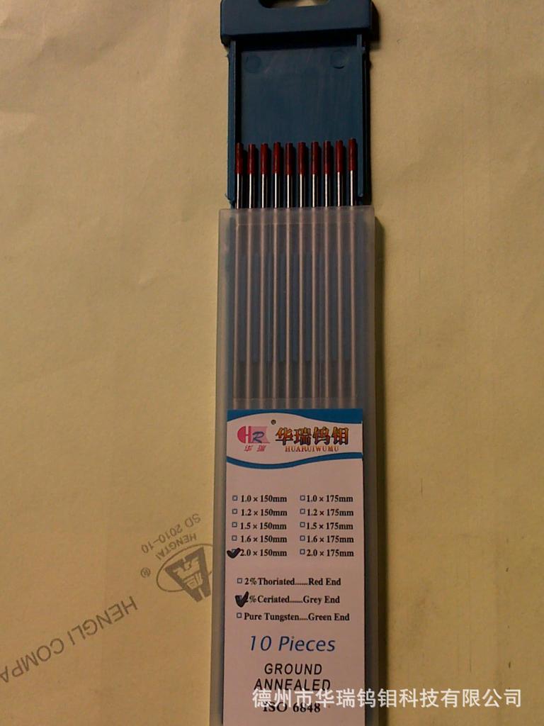 Thorium Tungsten electrode 钍钨电极 | Huarui 华瑞 | ThO2 | <0.20 | 余量 The rest | Red 红 | ISO6848 |