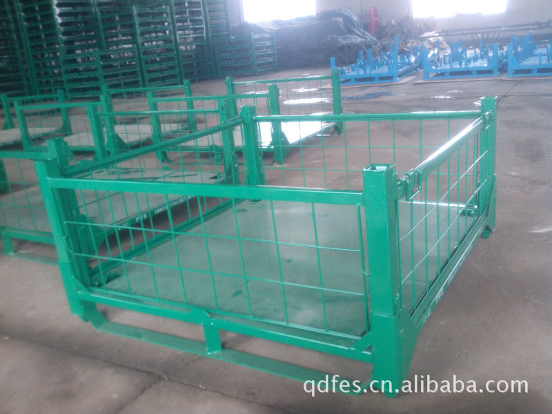 该结构产品是一种介于可折叠仓储笼和固定式重型周转箱之间的可折叠物流、周转箱,广泛应用于金属加工、铸锻造、压铸、冲压等,箱子四周立柱跟底盘的特殊连接结构,使的箱子在堆高时,安全稳定。表面喷粉处理,有效防止划伤、磕碰。