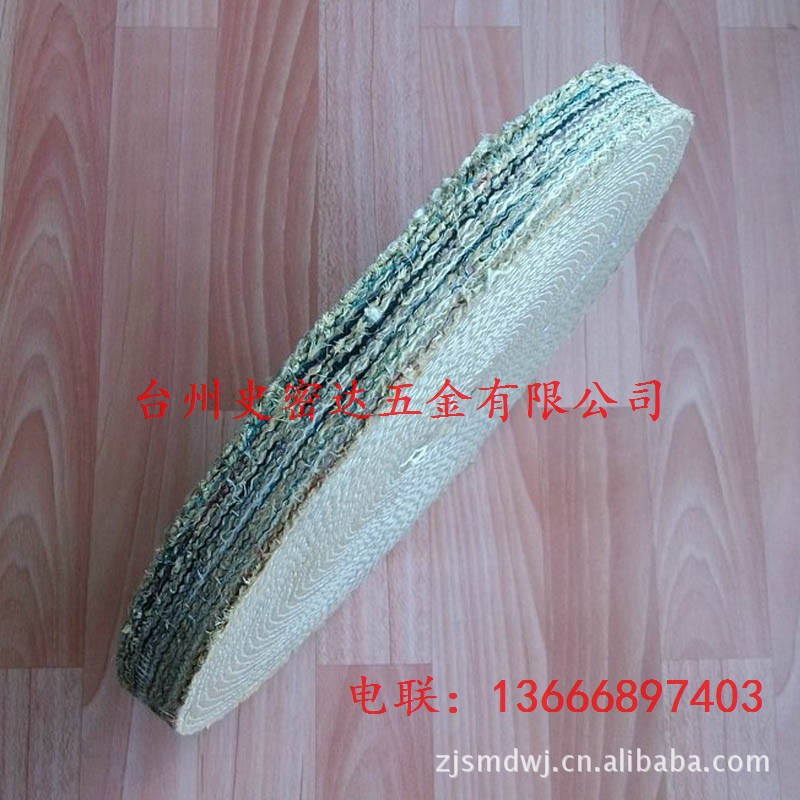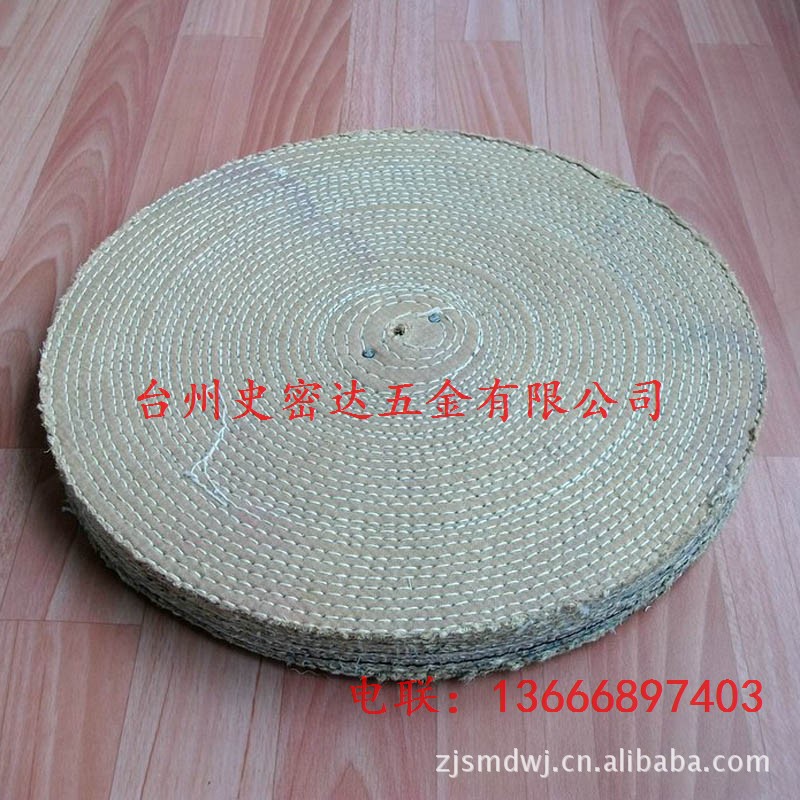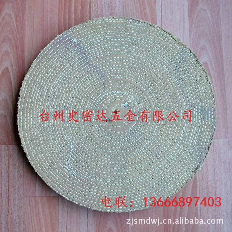 产品简介:麻轮的主要原料是剑麻,按45度角裁剪,再经强缝纫线缝制而成,具有一定的硬度及很强的磨削能力。