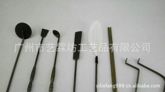 羽尘:长18CM 当要品香时,用羽尘将香炉沾有香灰的炉壁清理干净,表示对客人的礼貌。