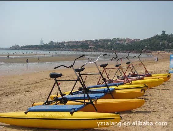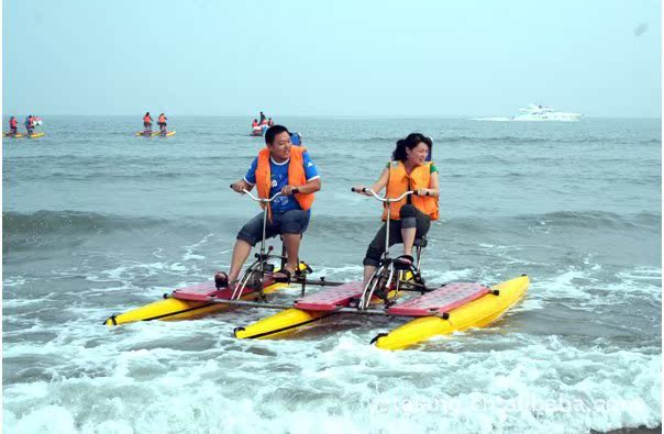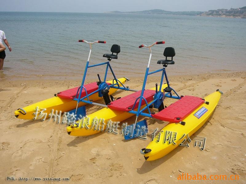 全塑水上自行车采用进口的耐冲击、高强度、抗紫外线聚乙烯材料加工而成。结实耐用,设计轻巧,外观精美,视觉效果独特,使游客与大自然融为一体。无需培训、操纵简便、进退自如、是健身娱乐、水上休闲的首选产品。