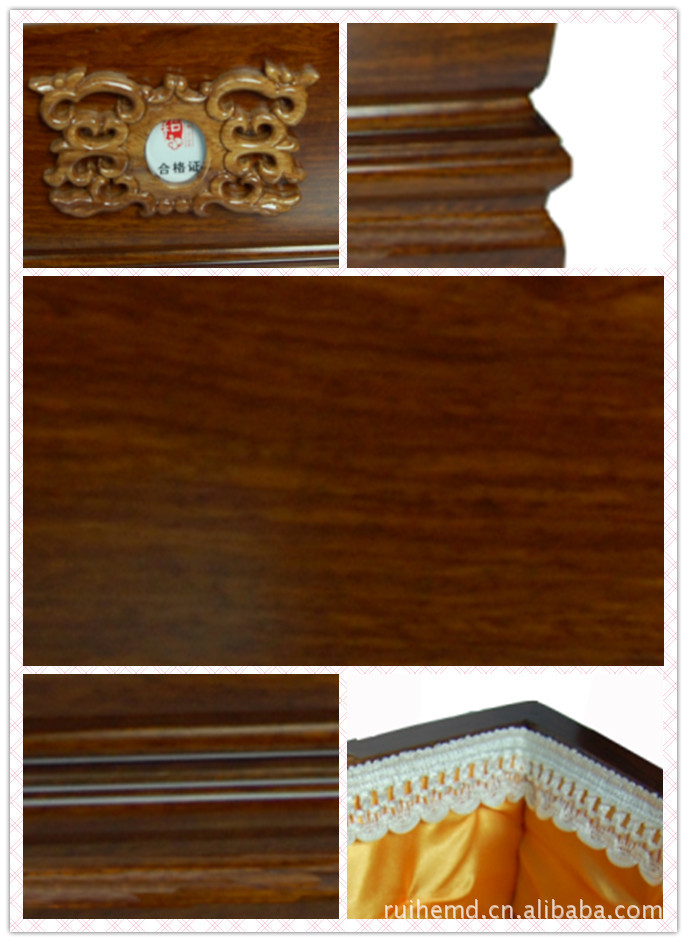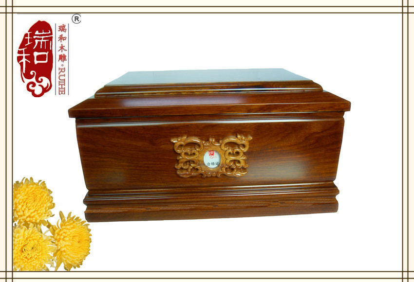 西安瑞和:西安瑞和木雕工艺品厂生产的骨灰盒选用优质南洋红檀为原料,该木木质硬重,耐腐,木质细腻光滑,属名贵木材。本产品造型新颖大方,线条流畅,艺术美观,工艺精湛,加上采用高档PU金铜漆喷漆工艺,漆面光亮,更显富有名贵,大气庄重,属高档寿盒。