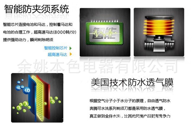 本公司是一家专注于剃须刀、电推剪、剃绒器、女士剃毛器刷等日用护理类家居电器的独资实业。公司整合和优化当地的家电资源配件供应商,力求做到品种齐全、质量过硬、价格低廉、服务至上,更好的服务于国内外客商。部分产品在全球80多个国家和地区同步销售。