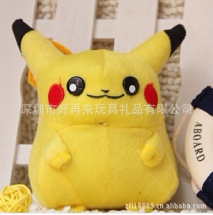 商品名称:18CM可爱皮卡丘商品单位:个商品尺寸: 18*12CM单个重量: 0.091千克商品材质: 外表短毛绒 里面PP棉填充商品包装: 12个/包 OPP袋包装商品产地:深圳装箱数量:240外箱规格: 70*55*50CM毛重净重:24/22