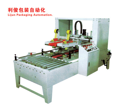 自动角边封箱机适用折叠压痕合口纸箱的上下箱盖折合后用自粘性胶带对纸箱的角边封合。与前输送机、合口中缝FJZ5050自动折盖封箱机、转向输送机、后输送机组成自动封箱流水线。还可与纸箱成型开箱机、装箱机、贴标机、捆包机、栈板堆叠机(码跺机)、其它输送机等设备配套成包装流水线使用,为包装流水线作业所必须的设备。