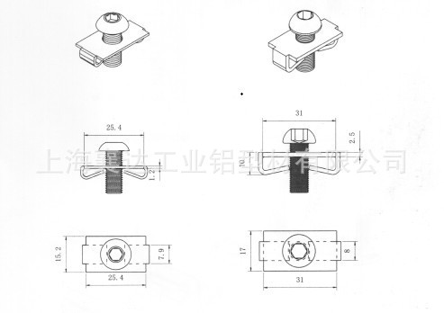用途:用于两段型材直角连接,将其插入一段型材的槽坑内,与专用螺栓配套使用,此连接方式紧固可靠,其特点是具有防松抗震的功能。通常和半圆头螺栓配套使用,配套的螺栓需另外采购。