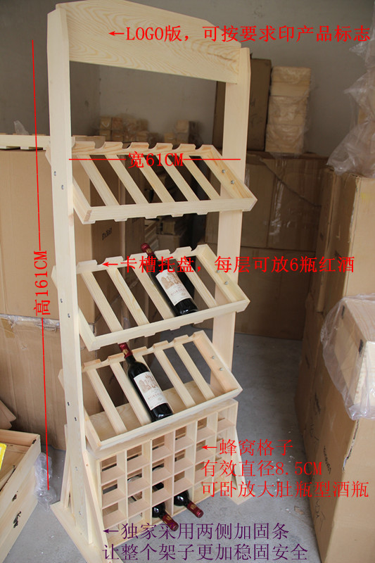 品 名:松木原木红酒架(图片为原木色实物参考,可刷漆,颜色可按要求做,也可按要求订做LOGO,LOGO工艺:丝印,烙印,雕刻等等,不同工艺不同的制作费,具体电话详谈!)
