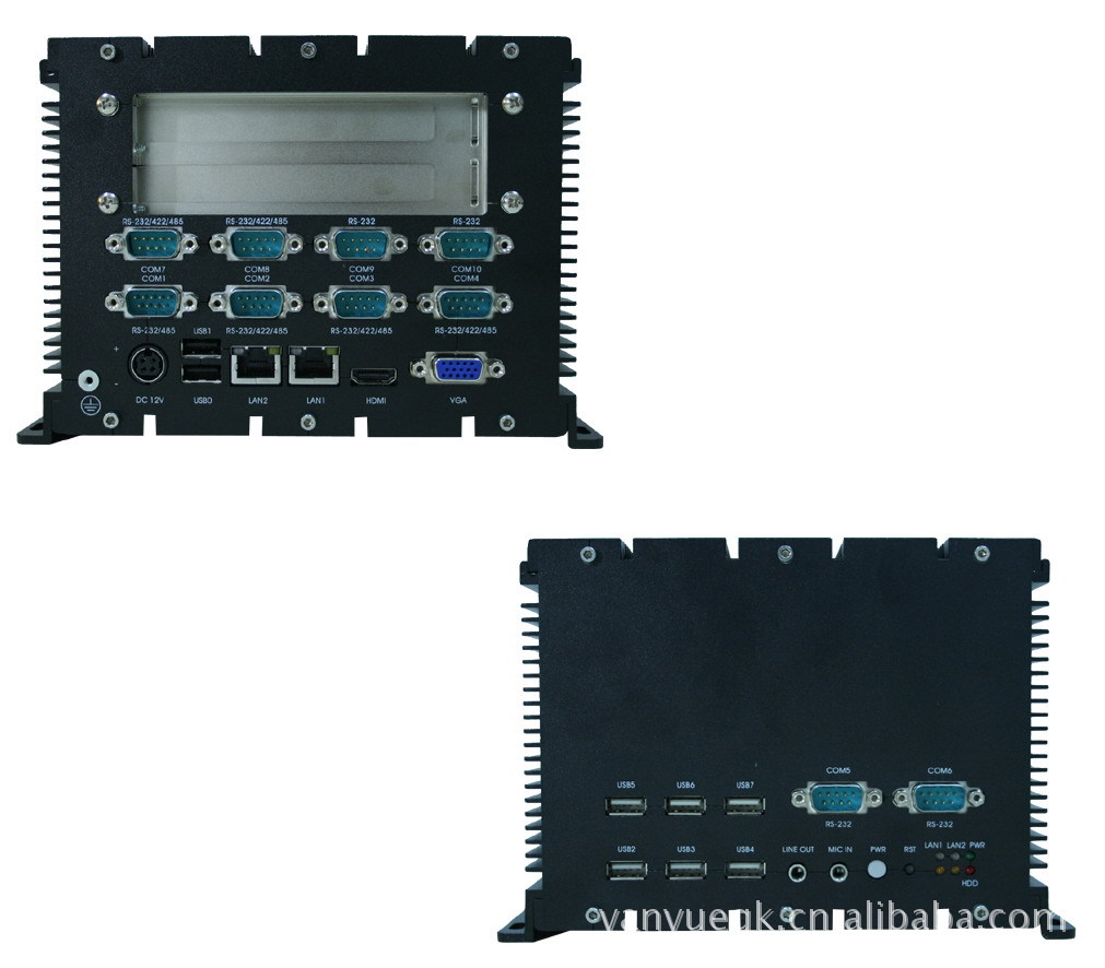 外在接口: 7USB;10COM(4个RS2233,1个RS232/485,5个RS232/422/485);VGA; 2xRJ45;