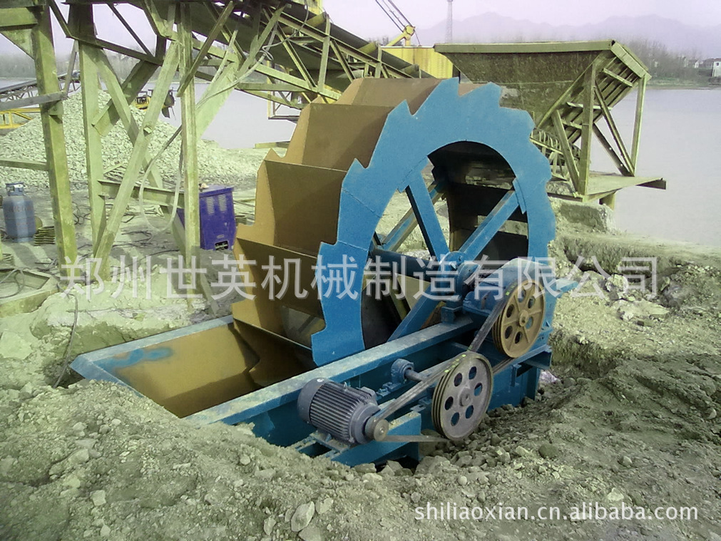 洗砂机广泛用于砂石场、矿山、建材、交通、化工、水利水电、混凝土搅拌站等行业中对物料的洗选。轮式洗砂机是配合制砂机使用的一种水洗式制砂的洗砂设备,轮斗式洗砂机可以将制砂机制出的混合砂子洗去微量的石粉和杂质,从而提高砂子的质量。轮式洗砂机主要用于建筑工地、沙石厂、水电站混凝土大坝 工地、邮电电杆厂需单位沙石及铸造用砂、玻璃厂石英沙及油井回填用砂的洗选、分级和脱水。