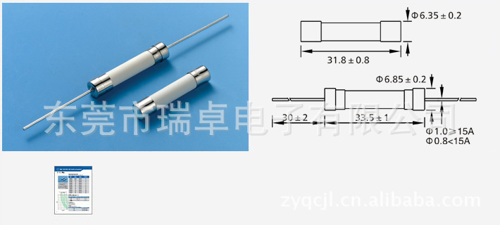 厂家直销6*32 陶瓷管引线保险丝 电流保险丝 欧规 慢断型